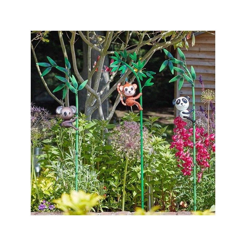 Pique décorative à planter dans un parterre ou un pot de fleurs. Mix de 3 designs: singe, koala ou panda sur bambou. Métal - 100 x 20 x 7 cm