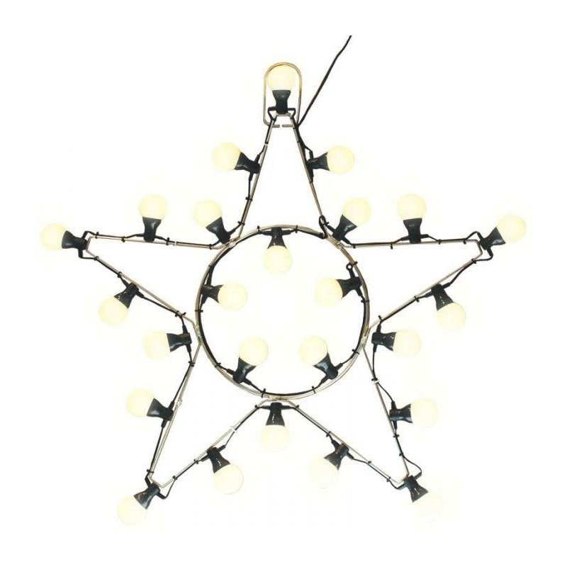 Etoile vintage lumineuse à LED : - Nombre de LED : 25 - Coloris : blanc chaud - Fixe - Dimension(Ø) : 76 cm - Puissance : 12 W - Tension : 12 V - Câble de branchement de 3 m : noir - Usage intérieur & extérieur. - Vendue à l'unité.