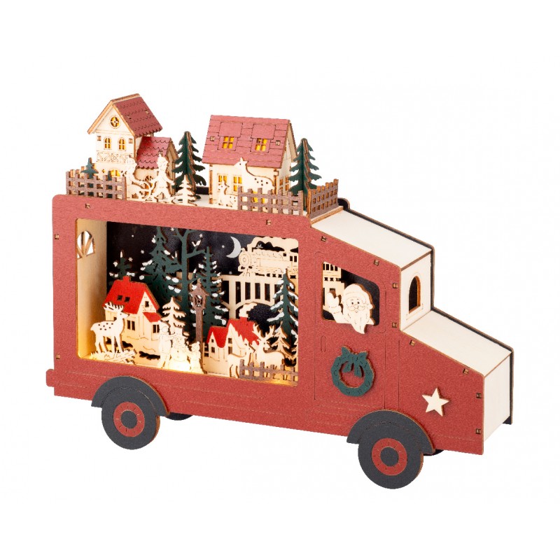 Calendrier De L'Avent Bus Led Blanc Chaud H23.7 En Contre-Plaqué-Vendu À La Pièce-LUMINEO