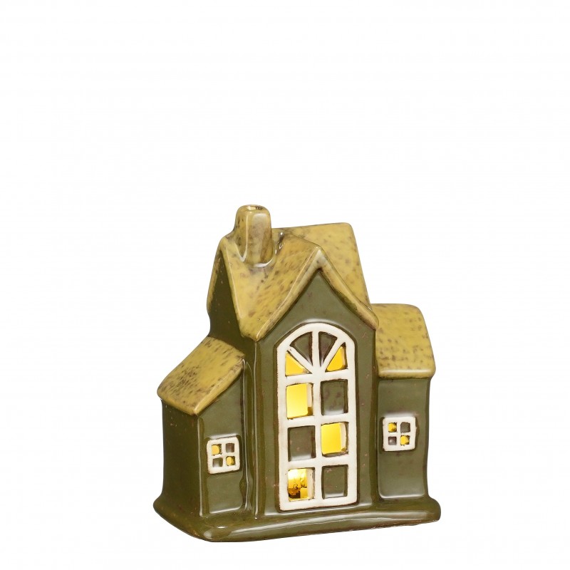 Photophore Maison Led À Pile Vert En Céramique H12.5-vendu à La Pièce-MICA DECORATIONS