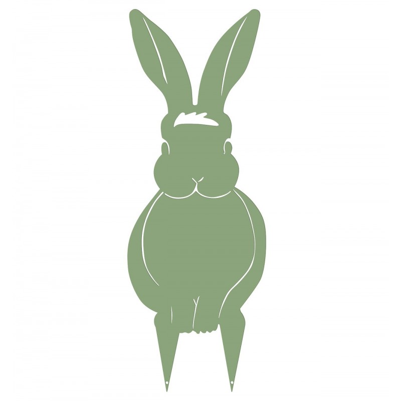 Cette figurine Lapin à piquer en pot ou dans un massif est parfait pour donner un peu de gaieté et de vie à votre espace extérieur. Cette figurine mesure 43,5 cm de haut et 17 cm de large. Fabrication française. Acier époxy résistant au gel et UV. Disponible en deux coloris : fer vieilli et vert pâle