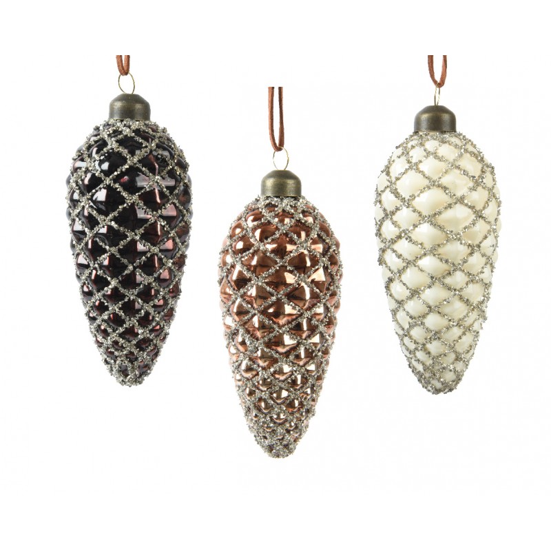 Suspension Pomme De Pin Blanc/Rouge/Or En Verre Ø6-H12 - Vendu À La Pièce-DECORIS
