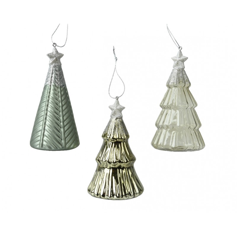 Suspension Sapin Tête Paillette Vert Romarin H12.60 En Verre-Vendu À La Pièce-DECORIS