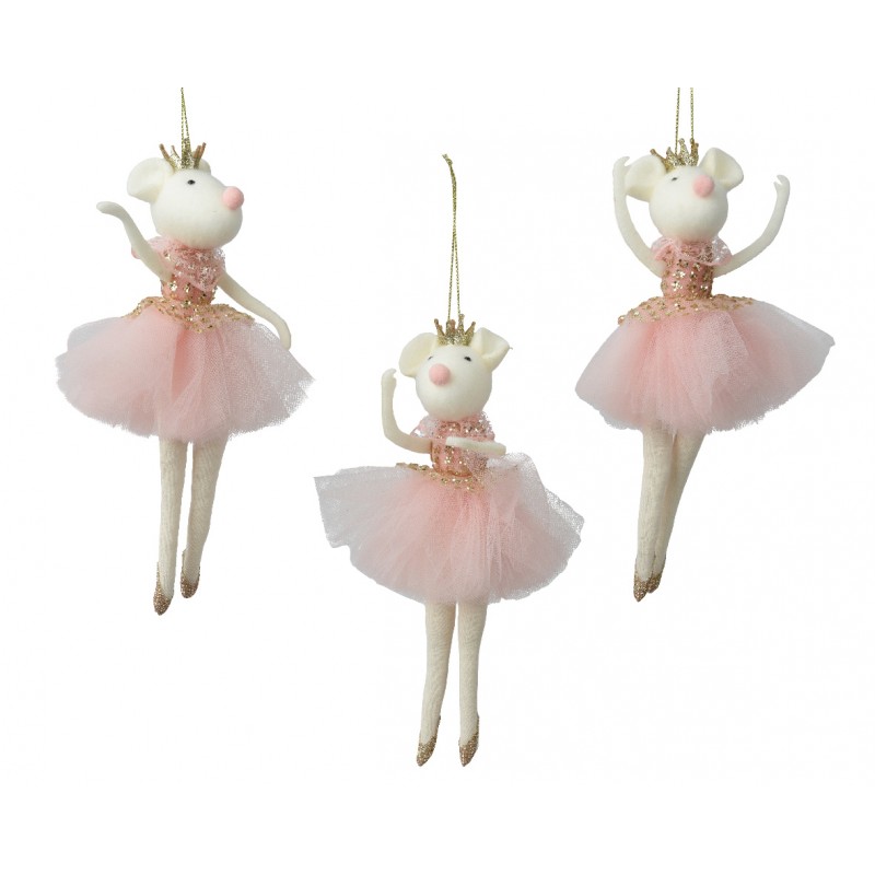 Suspension Souris Danseuse Rose H19.50 En Polyester-Vendu À La Pièce-DECORIS