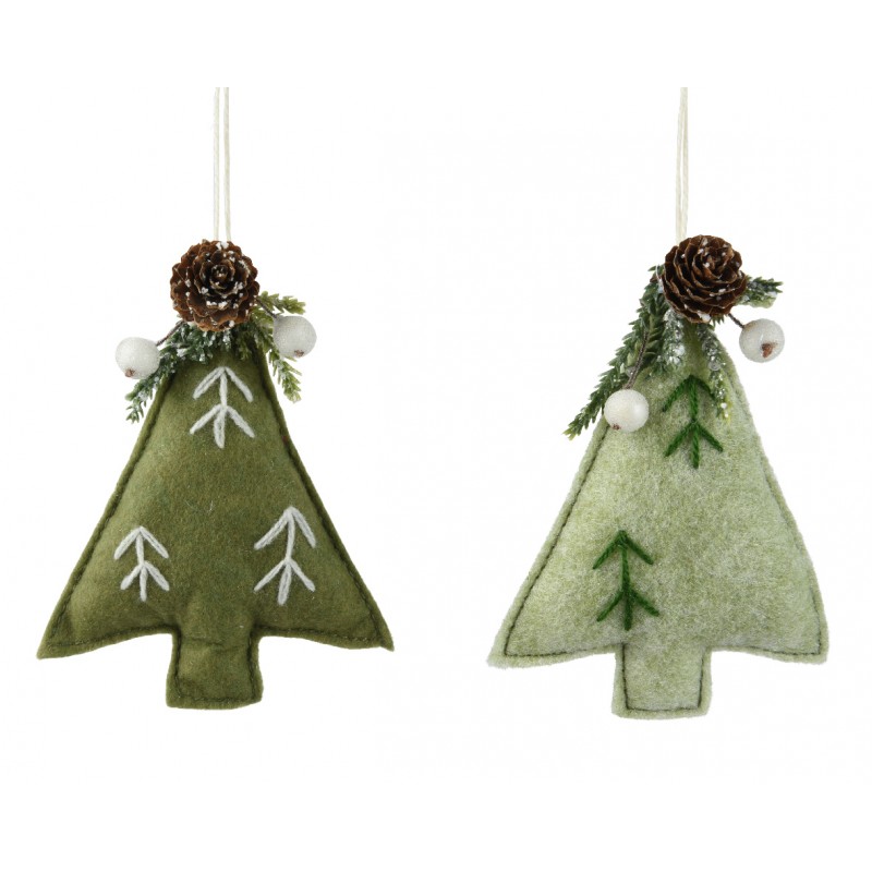 Suspension Sapin Pomme De Pin Vert 3X11X14 En Feutre-Vendu À La Pièce-DECORIS