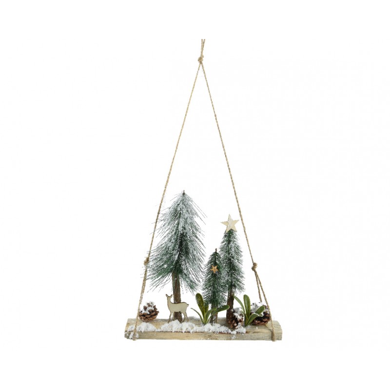 Suspension Paysage Enneigé Vert En Pin 30X30 - Vendu À La Pièce-DECORIS