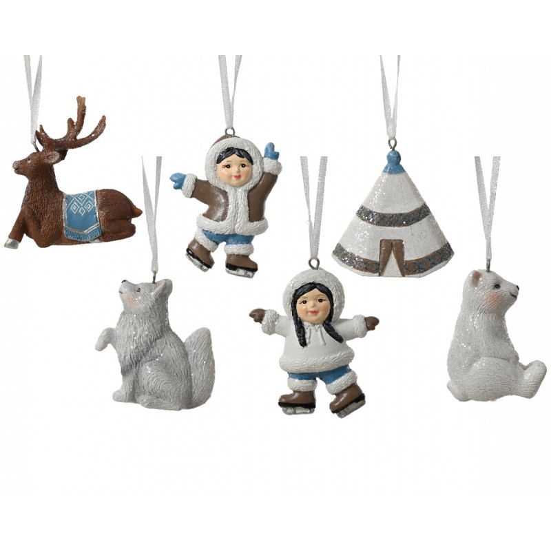 Esquimaux À Suspendre Bleu/Blanc/Brun En Polyrésine H6 - Vendu À La Pièce-DECORIS