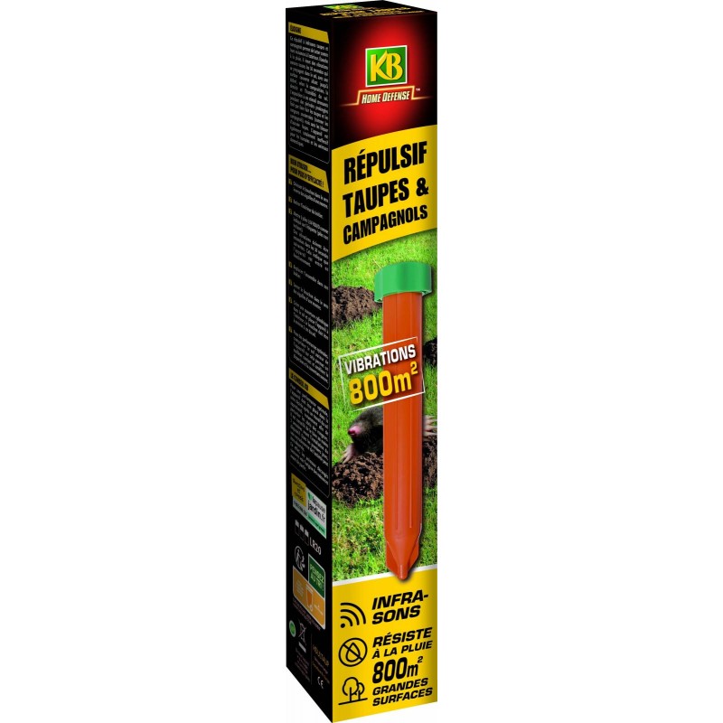 Ce répulsif taupes à vibrations permet de lutter contre leurs nuisances à l'extérieur. Étanche à la pluie. Il émet des vibrations sonores basses fréquences toutes les 30 secondes qui se propagent dans le sol. avec une surface couverte allant jusqu'à 800m² (grandes surfaces). selon la composition. la densité et l'humidité du sol.
