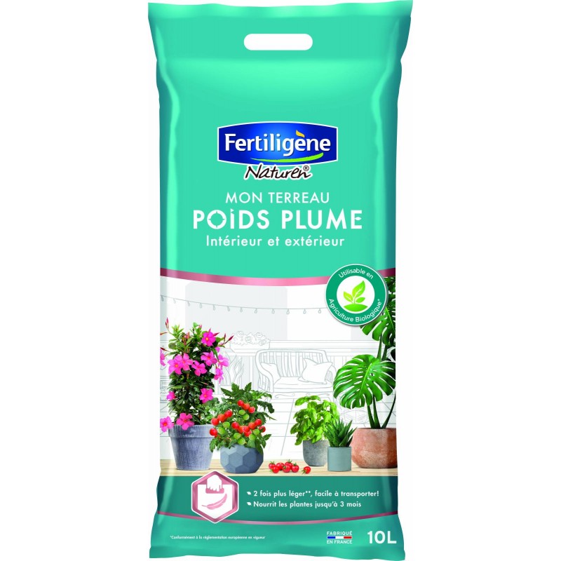 2 fois plus léger et facile à transporter ! Permets de planter ou rempoter tout type de plantes plantes (vertes.fleuries…). Enrichi en engrais. il apporte tous les éléments nutritifs essentiels à leur croissance. Utilisable en agriculture biologique*.