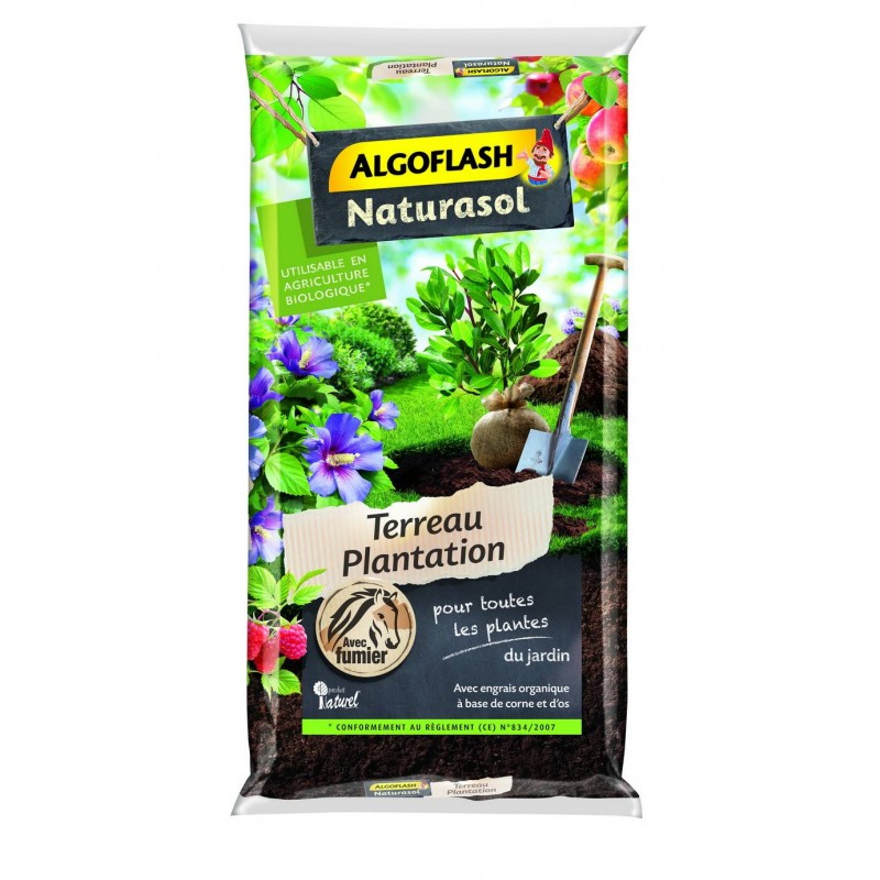 Mélange complet prêt à l'emploi recommandé pour la plantation de toutes plantes du jardin (arbres. arbustes fruitiers et d'ornement. plantes potagères?). Avec engrais organique à base de corne et os pour une bonne reprise des végétaux. Label produit naturel. Utilisable en Agriculture Biologique*.
