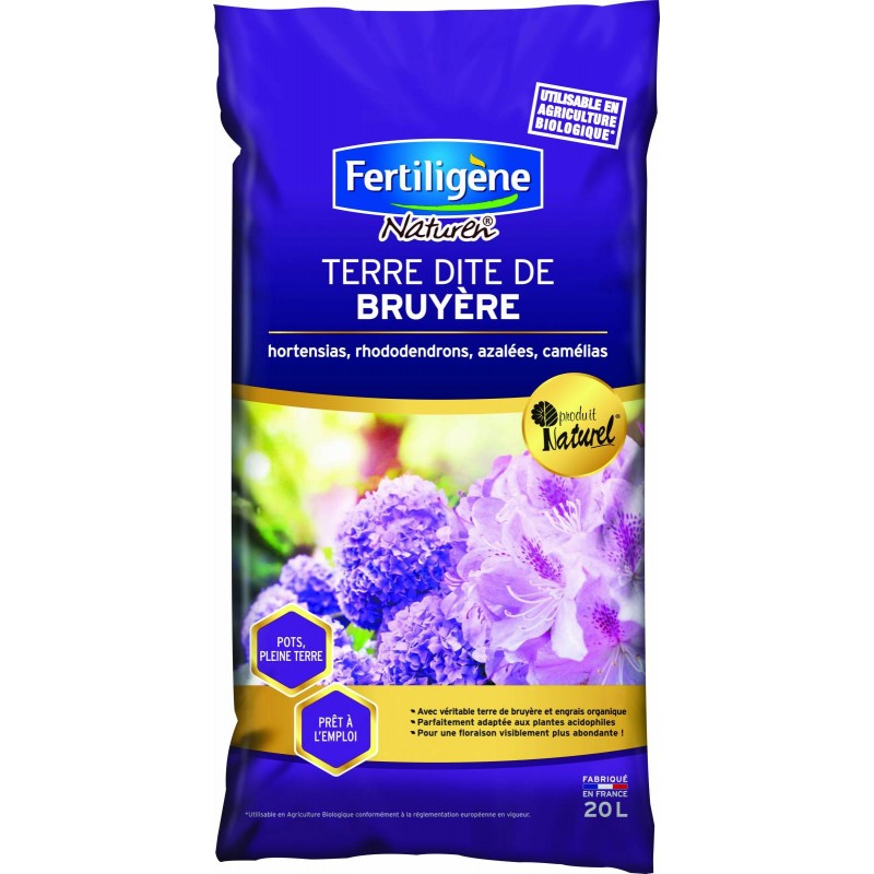 Prêt à l'emploi pour une utilsation en pots ou pleine terre. Avec véritable terre de bruyère et engrais organique. Parfaitement adaptée aux plantes acidophies. Produit Naturel et utilisable en agricuture biologique (conformément à la règlement européenne en vigueur.). Fabriqué en France. Sac fabriqué à partir de 30% de plastique recyclé.
