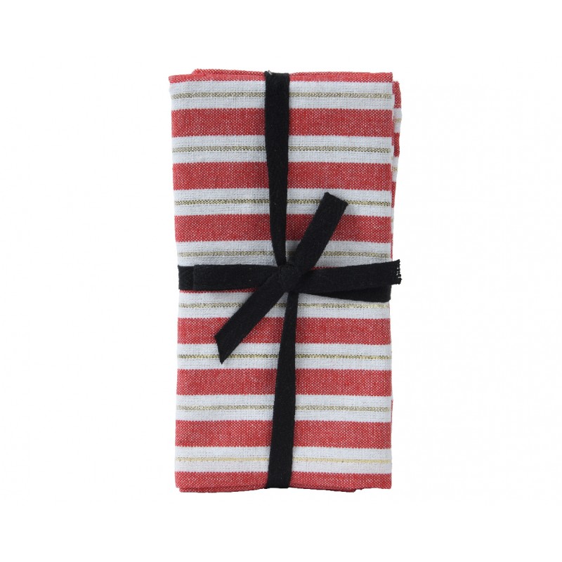 Serviette X4 Rayures Rouge 40X40 En Coton-Vendu À La Pièce-DECORIS