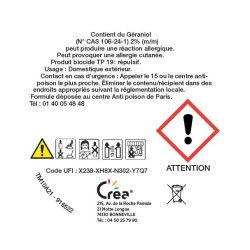 Usage extérieur. Protection 35h. Cire origine végétale. Contient du géraniol. 3 designs disponibles panachés|