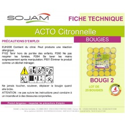MENTIONS OBLIGATOIRES: • Parfum citronnelle de synthèse. • Combustion longue durée. • S'utilise à l'intérieur, comme à l'extérieur de la maison.