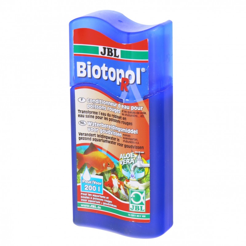 Conditionneur d?eau pour poissons rouges. Pour une nouvelle installation, un renouvellement d?eau et après traitement médical. Pour aquariums de poissons rouges. Fixe les substances problématiques de l'eau du robinet : cuivre, plomb et zinc, ainsi que le chlore et les chloramines. Eau saine, poissons en bonne santé : protège muqueuses, branchies, peau et nageoires grâce à l?aloé vera. Des vitamines du groupe B aident au fonctionnement du système immunitaire. Avec euphraise pour la protection des yeux. Utilisation : 10 ml pour 20 l d?eau.