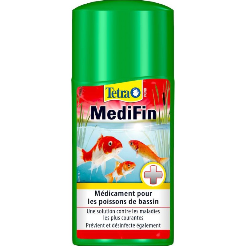 Médicament à large spectre pour lutter contre les maladies les plus fréquentes des poissons de bassin d'ornement. Traite les parasites de la peau, notamment Ichthyophthirius multifiliis, Costia, Chilodonella et Trichodina, ainsi que les champignons, infections bactériennes de la peau et pourriture des nageoires. Tetra Pond MediFin aide également à traiter les plaies et tous les types de blessures externes. Médicament à large spectre conçu pour traiter les maladies les plus fréquentes des poissons de bassin. Lutte contre les maladies parasitaires et bactériennes, dont les infections, les champignons et la pourriture des nageoires. Efficace contre les plaies et tous les types de blessures externes. Désinfecte l'eau des bassins de jardin. Peut également être utilisé comme traitement préventif, en particulier avant et après la période de dormance et lors de l'ajout de nouveaux poissons.|