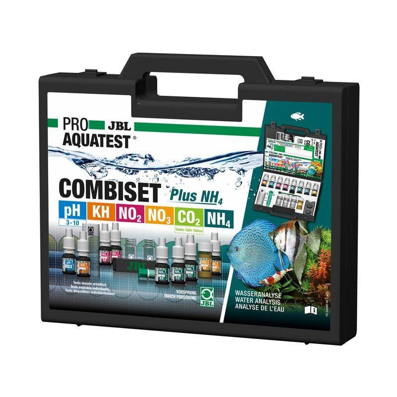 Coffret avec les principaux tests d'eau + test NH4. Détermination de: pH. dureté carbonatée. ammonium/ammoniaque. nitrites. nitrates. CO2 (calcul par tableau). Remplir le flacon d'eau. ajouter l'indicateur. comparer avec nuancier/compter les gouttes jusqu'au changement de couleur Prise en compte de la coloration de l'eau par le comparateur. Teneur en CO2 déterminée sur tableau par valeurs pH / KH. Flacons de réactifs avec sécurité enfants. coffret résistant à l'eau. recharges de réactifs disponibles séparément. CONTENU: 1 coffret de tests. réactifs. 4 éprouvettes. seringue. mesurette. comparateur. nuanciers. fiches d'analyse.|