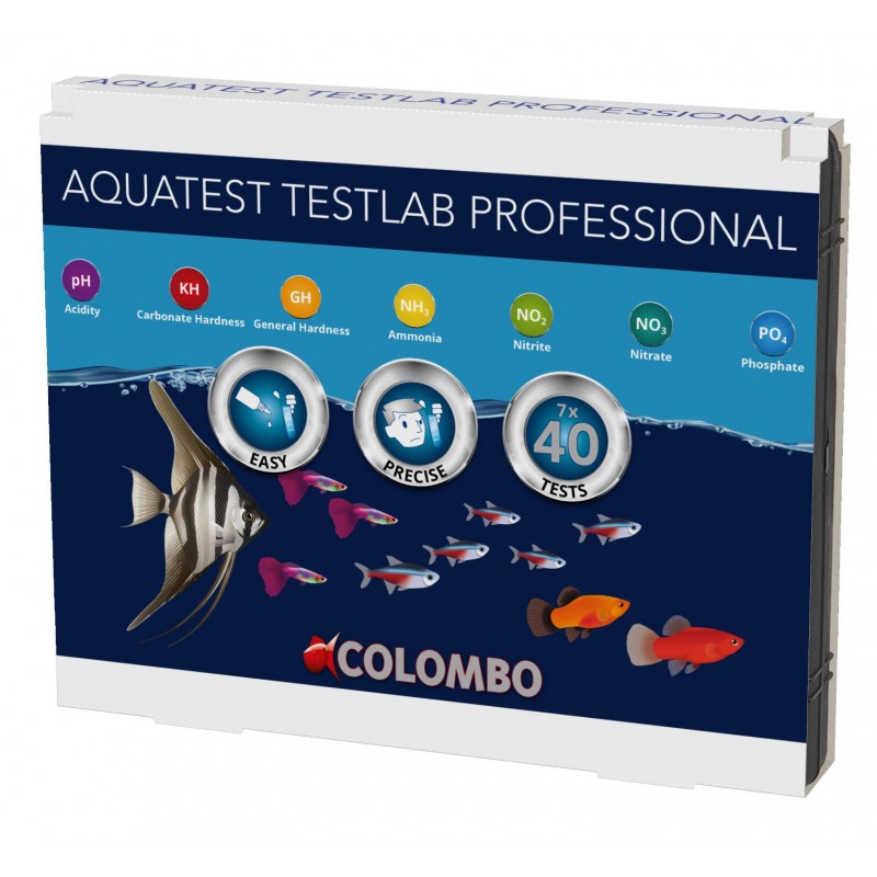 Mallette de test avec des test liquides professionnels pour tester l'eau d'aquarium et du bassin. Inclus dans la mallette des tubes éprouvette, un guide de couleur, une seringue et un manuel complet. Les test Colombo unitaires Aquatest peuvent remplacés ceux utilisés. PH/GH/KH/NH3/NO2/N03/PO4|