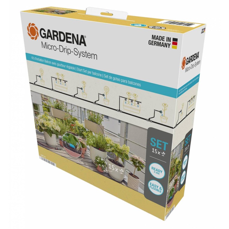Kit D'Initiation Pour Balcon Avec Goutteur Réglable Noir/Gris/Turquoise/Orange-GARDENA