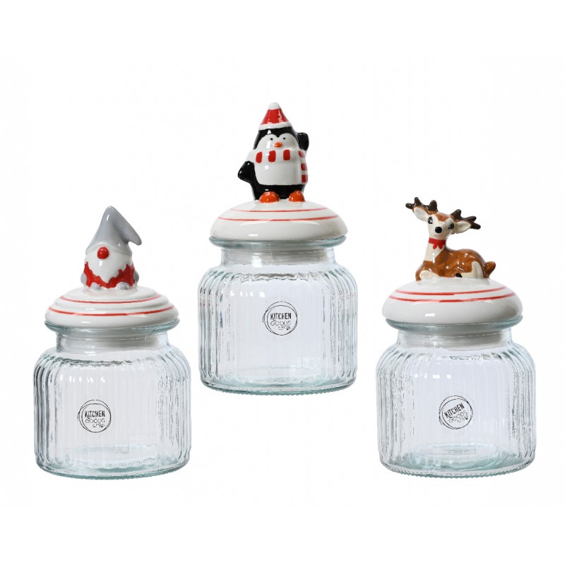 Bocal Avec Couvercle Noël Multicolore Ø11-H20 En Verre-Vendu À La Pièce-KITCHENGOODS&MORE