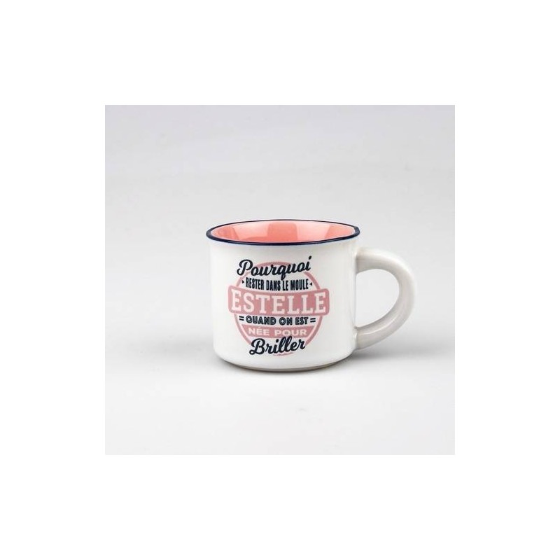 Commencez votre journée de bonne humeur avec les tasses expresso personnalisées. Prénoms ou messages. ces tasses en faïence plairont aussi bien aux hommes qu’aux femmes. Leur design moderne rappelant les gobelets métalliques de campeurs séduiront à coup sûr. Un cadeau fun et original pour les amoureux du café. À offrir pour les anniversaires. fête des pères. fête des mères. enterrements de vie de jeune fille et de garçon et autres évènements. Passe au lave-vaisselle.