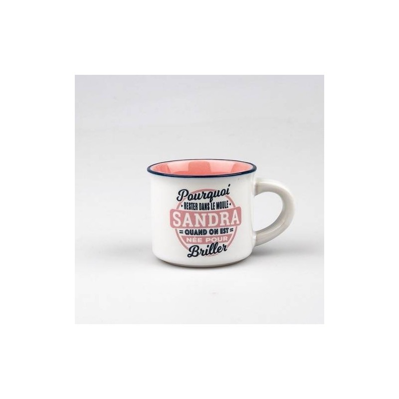 Commencez votre journée de bonne humeur avec les tasses expresso personnalisées. Prénoms ou messages. ces tasses en faïence plairont aussi bien aux hommes qu’aux femmes. Leur design moderne rappelant les gobelets métalliques de campeurs séduiront à coup sûr. Un cadeau fun et original pour les amoureux du café. À offrir pour les anniversaires. fête des pères. fête des mères. enterrements de vie de jeune fille et de garçon et autres évènements. Passe au lave-vaisselle.