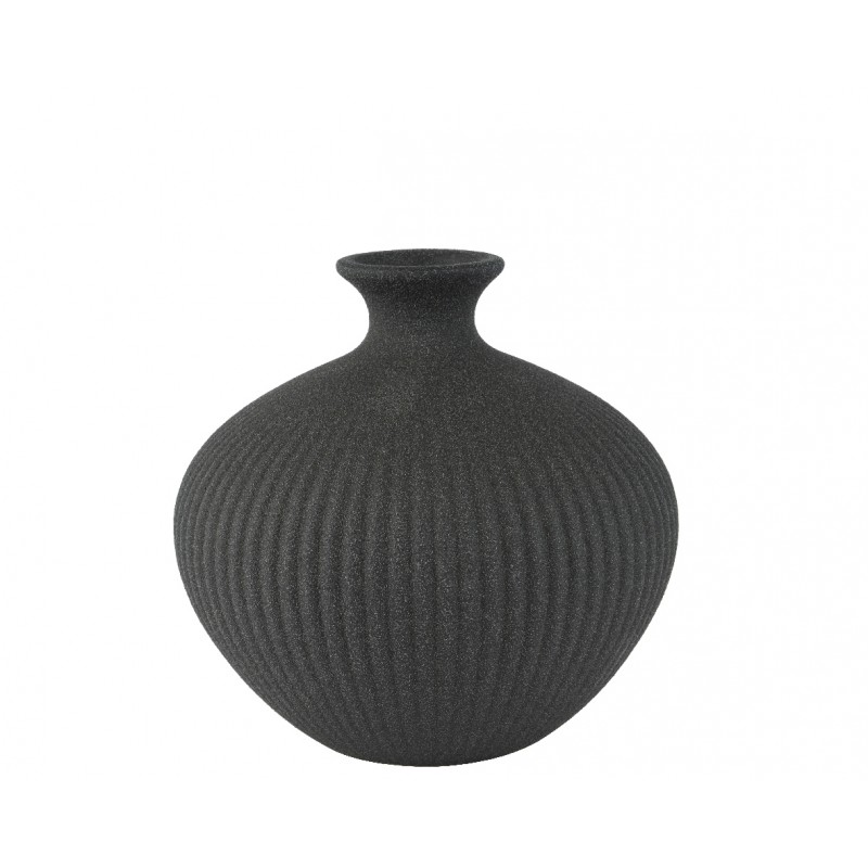 Vase Strié Noir Ø13.50-H13 En Grès-Vendu À La Pièce-DECORIS