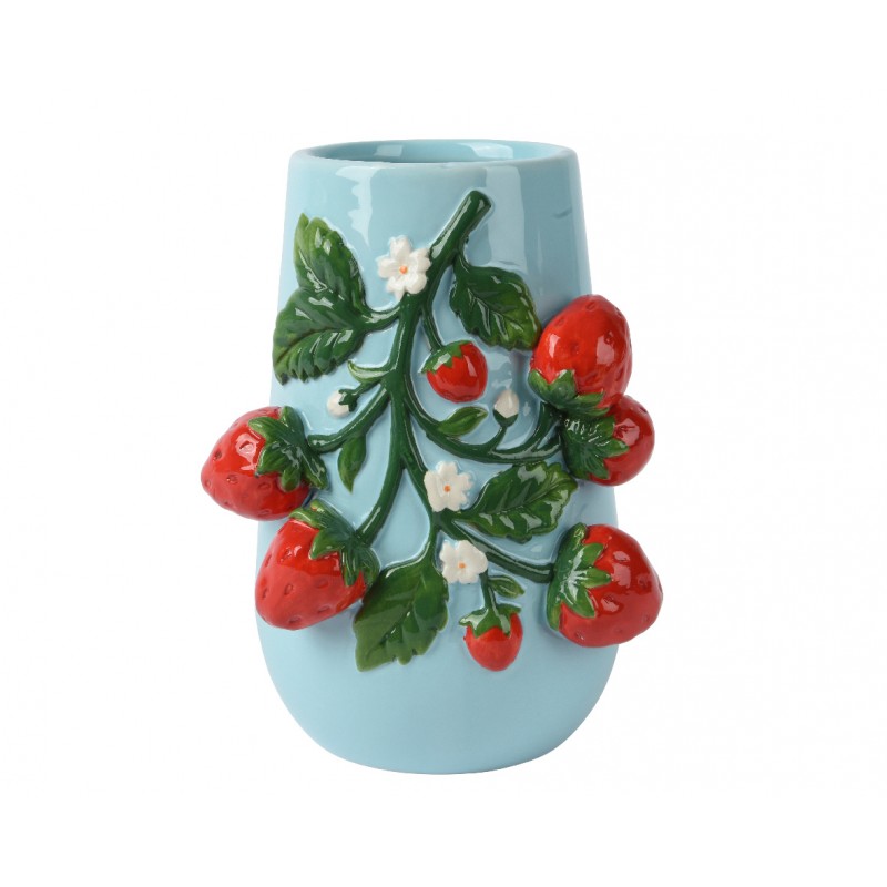 Vase Relief Fraise Bleu/Rouge En Dolomite Ø15-H22-KAEMINGK