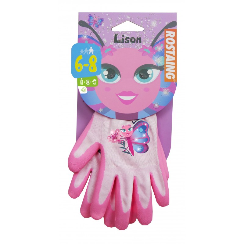 Dotez vos enfants de gants pour faire comme les grands ! Avec Lison le papillon, optez pour des gants au coloris rose pour leurs activités extérieures et leurs petits travaux de jardinage. D'un confort et d'une excellente dextérité, il sera facile pour votre enfant de jardiner avec aisance et sans perdre ses gants grâce à sa lanière comme au ski ! Enfin, grâce au gant Lison, vous ferez un acte engagé en choisissant produit issu de matériaux recyclés.|