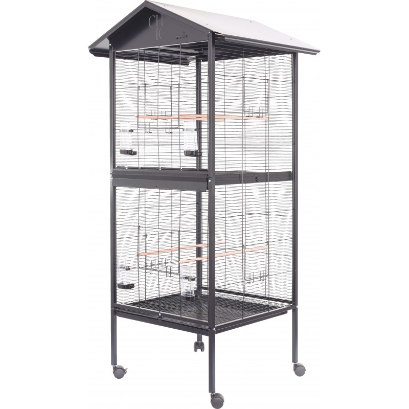 Nouvelle gamme de Volières CHIC avec toit et connectables pour oiseaux domestiques: modèle DUO NOIR
