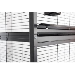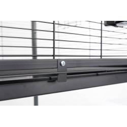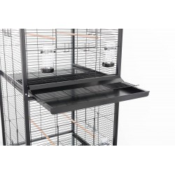 - Equipements: 2 tiroirs amovibles et 2 grilles de fond pour un nettoyage plus facile, 4 mangeoires, 4 perchoirs en bois certifié FSC mix et 4 roulettes (dont 2 avec freins)